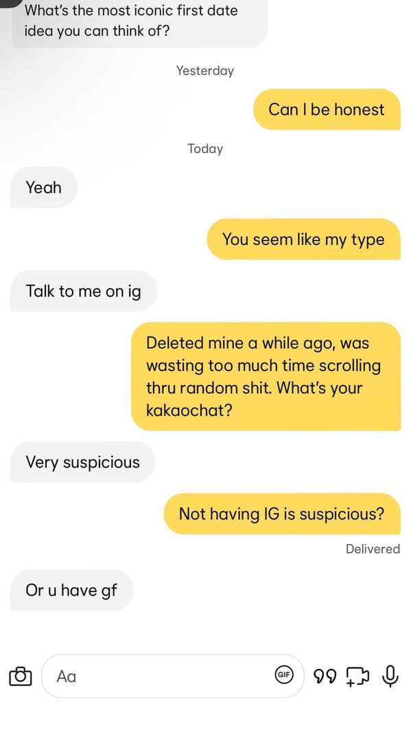 seeems like a time waster. "Not having IG is suspicious?"