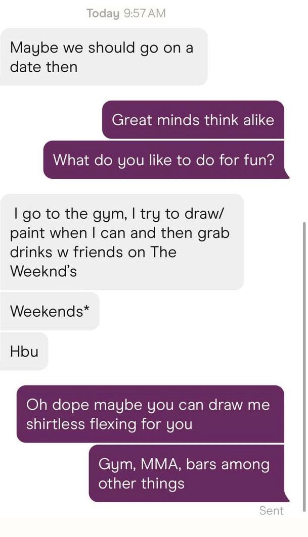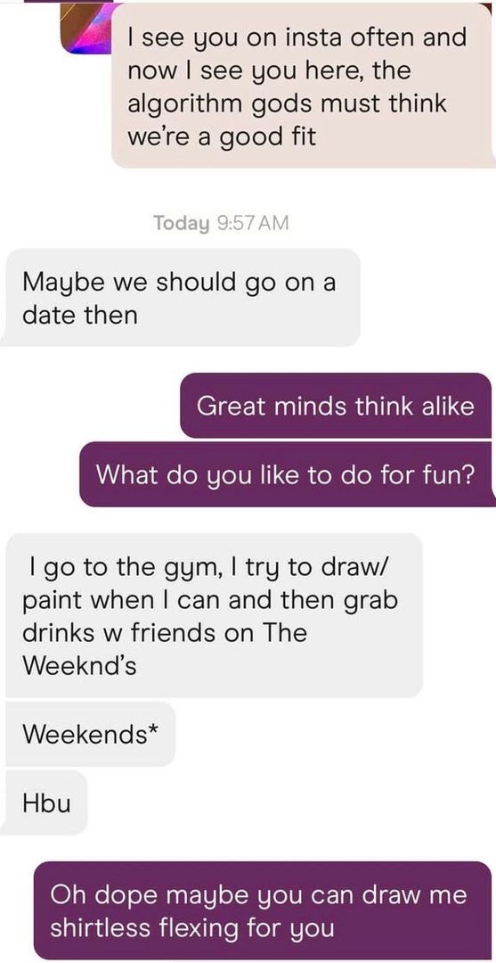 Agreed. I was definitely reaching and trying to be gamey where it didn’t feel natural for me. She did reply though. “Lmao not a chance that’d be good but that’s fun I feel like I haven’t had much free time lately”.
